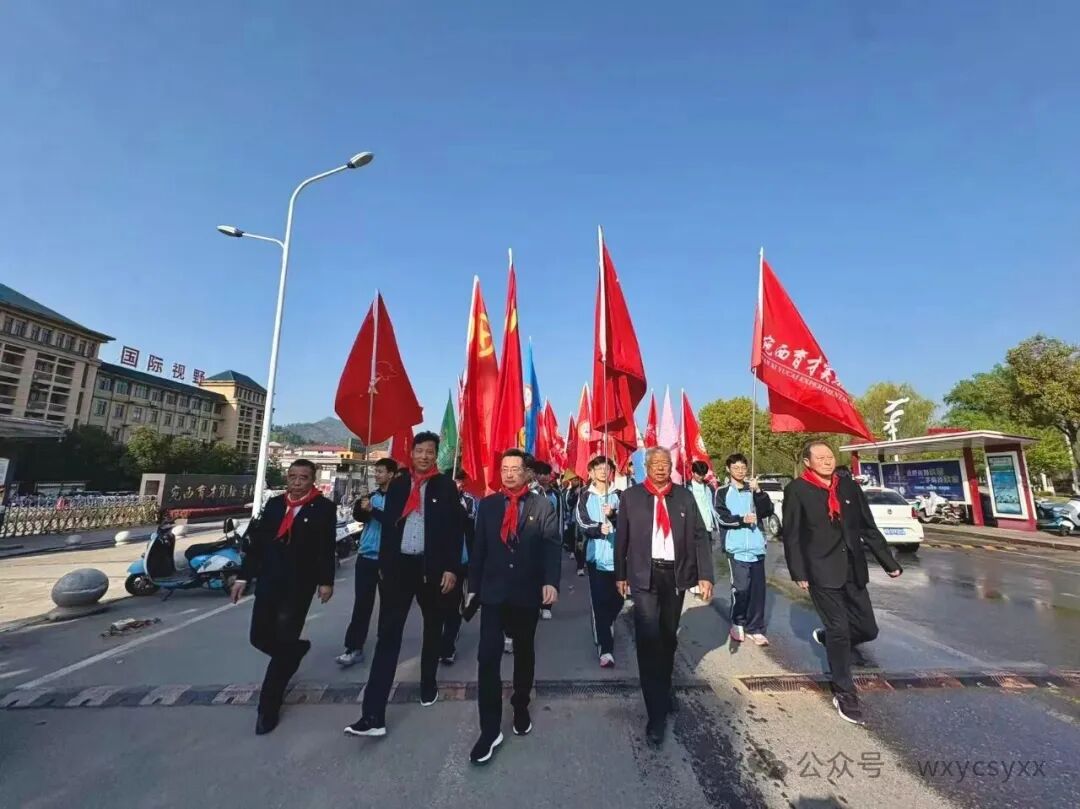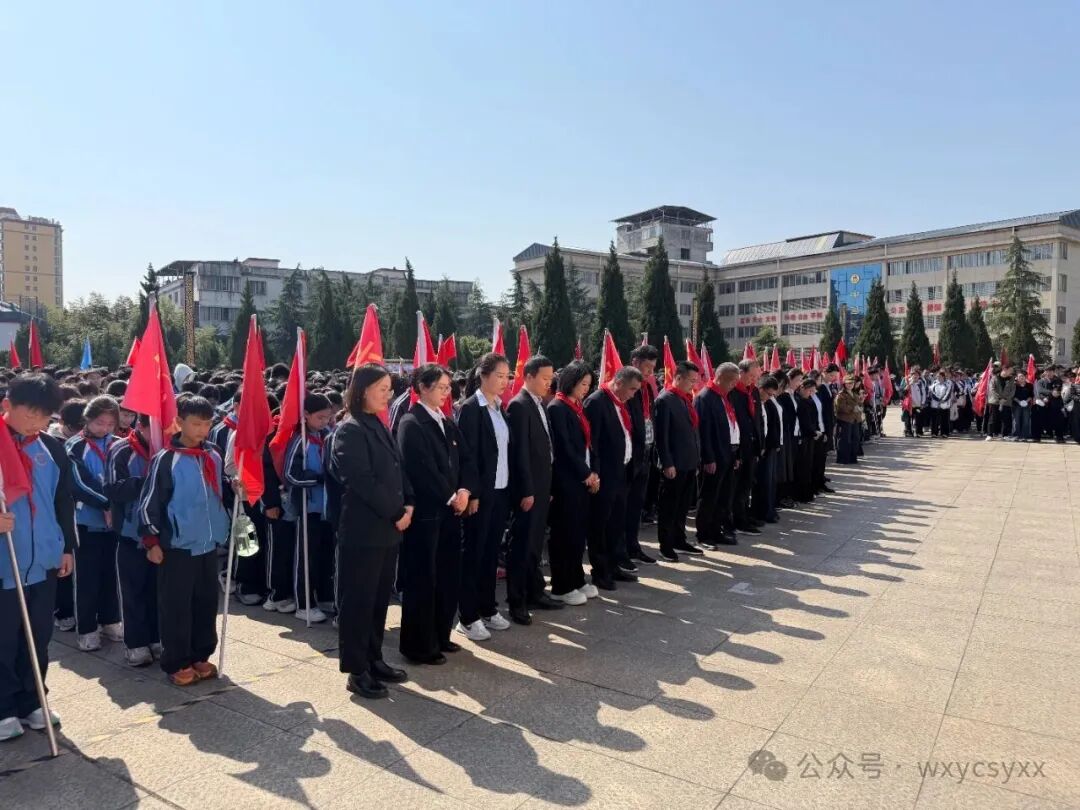 默哀毕,学生代表手捧精心准备的花篮,缓缓走向纪念碑,郑重地将花篮敬献于碑前。鲜艳的缎带、素雅的鲜花,承载着全体师生对革命先烈的崇高敬意与深切哀思。校领导缓步上前,轻轻整理花篮缎带,表达对先烈的无尽缅怀。